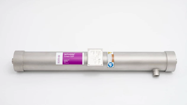 Das SEPURAN® Green Kartuschensystem ist eine konsequente Weiterentwicklung des Moduls, um Gewicht und Preis zu senken sowie die Handhabbarkeit und Praktikabilität zu erhöhen. Das Kartuschensystem besteht zum einen aus einer Membrankartusche, die die Hohlfasermembranen enthält, sowie zum anderem aus einem Edelstahlgehäuse zum Einbau in die Aufbereitungsanlage. Die Kartusche wird in das Gehäuse integriert, verschraubt und anschließend mit Druck beaufschlagt. Das Edelstahl-Gehäuse für die SEPURAN® Green Kartuschen wird derzeit von unseren externen Partnern unter Berücksichtigung der jeweiligen landesspezifischen Vorgaben hergestellt. Der Anlagenbauer kann dadurch die Drückgehäuse flexibel an die lokalen Druckgeräterichtlinien anpassen. Es stehen Gehäuse für Drücke bis 20 und bis 40 bara zur Verfügung.