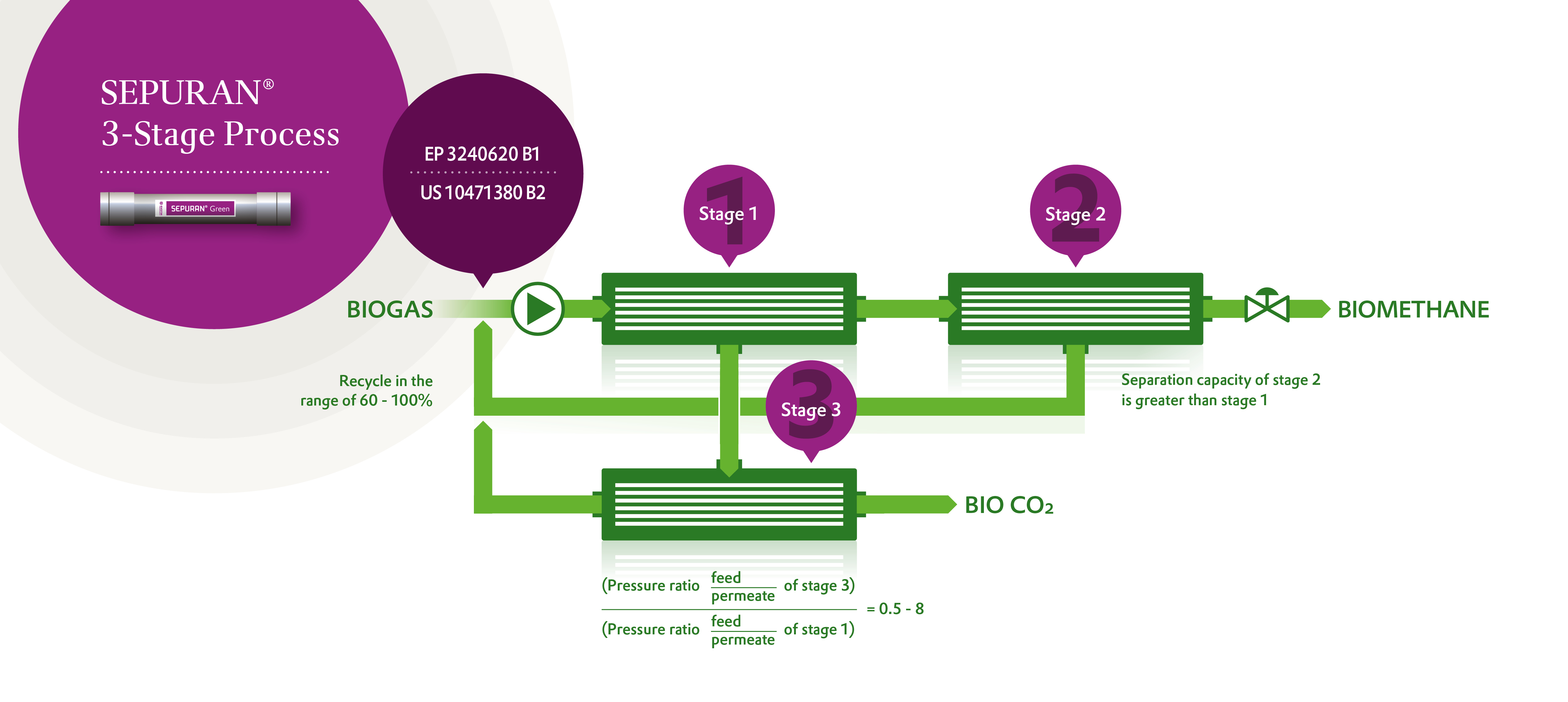 - Customers can be assured they are using Evonik’s unique 3-stage biogas upgrading process with SEPURAN® Green and all its benefits relating to energy and cost efficiency