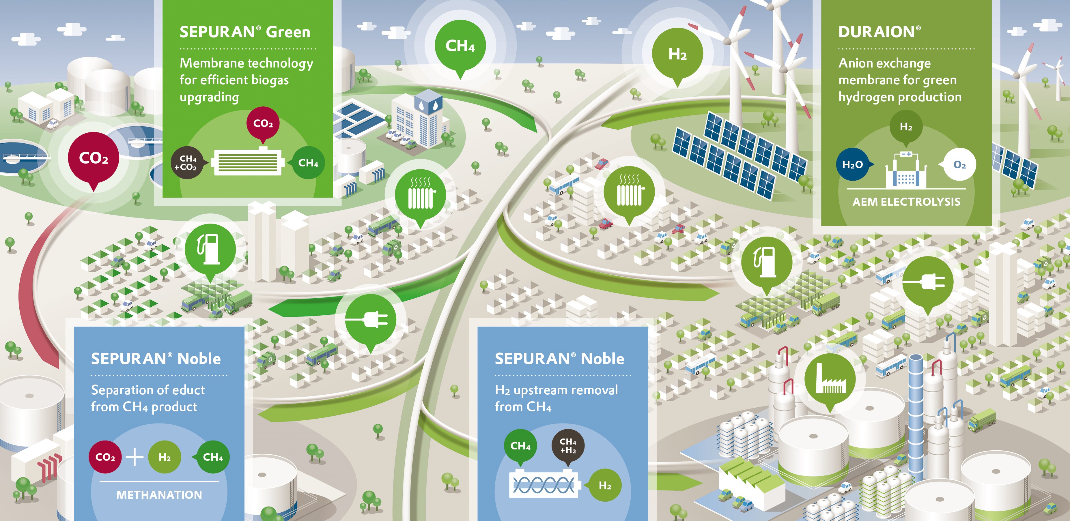 Com tecnologias inovadoras de membrana para recuperação eficiente de hidrogênio e produção de hidrogênio verde usando a eletrólise AEM, a Evonik está fazendo uma importante contribuição para uma economia de gás sustentável.